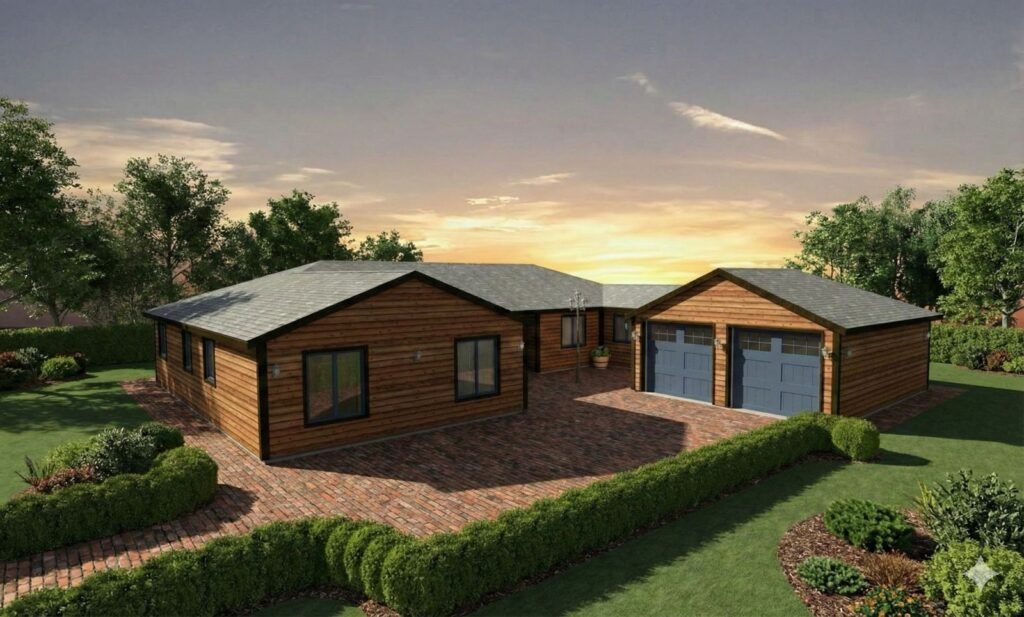 Built using FSL Homes’ precision lightweight steel frame system, the structure delivers strength, accuracy, and long-term reliability. The integrated garage offers secure storage and direct access to the home, making it ideal for families, rural plots, and homeowners who value functionality without compromising on design.